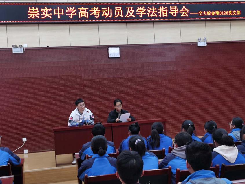 为帮助学生高考,2020年11月7日,经金学院硕0162党团支部走进咸阳市泾阳县崇实中学,开展“秉承西迁战高三”高考动员及学法指导会。硕0162班级党支部书记刘帅作为分享人,崇实中学副校长孙中旗及优秀高三班级同学参会。
