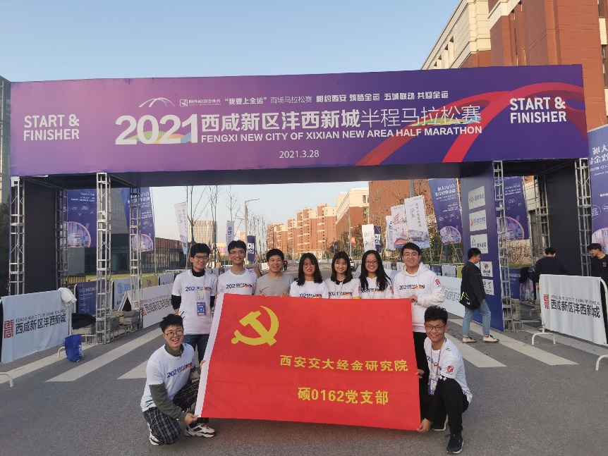 第十四届全国运动会举办在即,为深入贯彻落实习近平总书记“办一届精彩圆满的体育盛会”重要指示精神,带动更多群众参与全民健身、共享全民全运,营造浓厚的全运氛围,“我要上全运”百场马拉松赛——2021沣西新城半程马拉松活动于2021年3月28日在创新港举行。恰逢3月“学雷锋”纪念月,硕0162党团支部的全体成员响应“学雷锋”号召,积极报名沣西半马比赛志愿者,认真负责,热情服务,坚守岗位,以实际行动践行“奉献、友爱、互助、进步”的志愿服务精神,为赛事的圆满举办贡献出自己的力量。