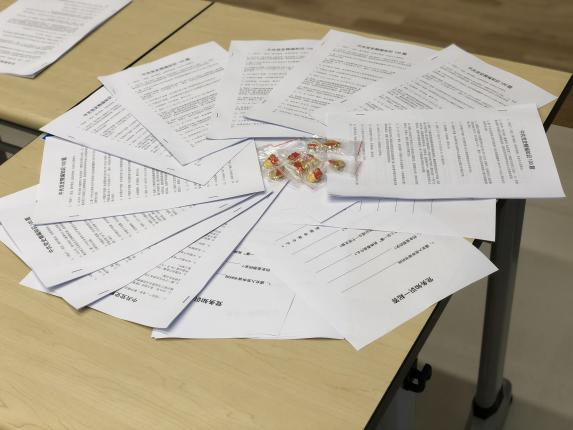 会议第四项,党支部书记石晨晖同志带领大家梳理入党流程,进一步明确成为一名光荣的中共党员必须经历的步骤,鼓励大家积极参加支部活动,主动学习党的新思想,早日成为中共党员。随后,石晨晖同志向大家发放了精心准备的“党务知识一起答”试卷和“中共党史精编知识100题”手册,与同学们重温党务知识和党的历史。试卷的第一题是让党员同志们回忆自己的入党日期,并交流入党时的心情感受。这道题目让参加活动的党员纷纷打开了话匣子,回忆起那永生难忘一天。