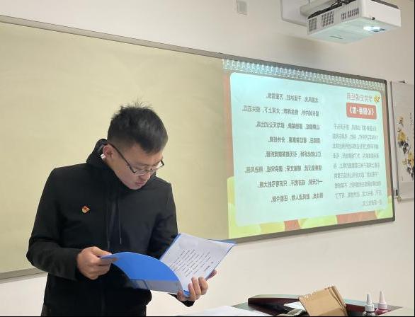 会议第三项,学党史、诵经典。支部成员在党员贾庆林同志的带领下,齐声朗诵毛主席的《沁园春·雪》。抑扬顿挫的朗诵中,大家仿佛又回到了那个战火纷飞的年代,又看到了那个指点江山的伟人,不由沉醉于那种豪放的风格、磅礴的气势、深远的意境和广阔的胸怀。