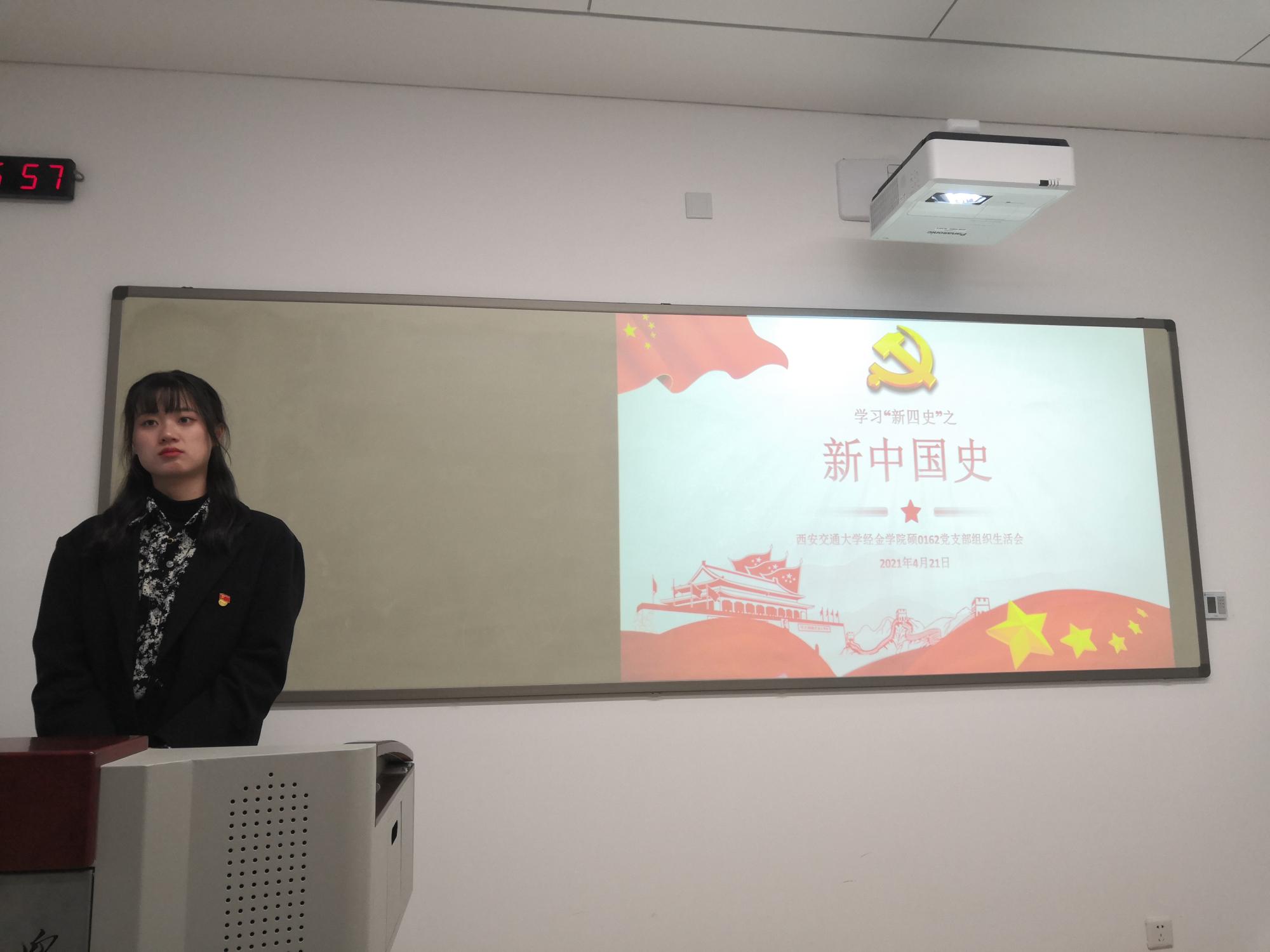 学习党史、新中国史,是坚持和发展中国特色社会主义、把党和国家各项事业继续推向前进的必修课。为了深入贯彻落实习近平总书记重要讲话精神,深入学习四史,经济与金融学院硕0162党支部开展了学习新中国史的专题活动,重温新中国从一穷二白到伟大复兴的历史,以史为鉴,学好四史,从党史、新中国史中汲取滋养,结合新的实际,接力推进中国特色社会主义伟大事业向前发展。