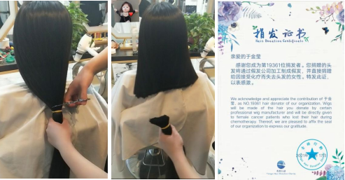 党员于金莹参与青丝行动,将自己的长发捐献给相关负责单位,用于为制造成假发直接捐赠给因接受化疗而失去头发的女性,并获赠证书。她捐赠的发丝也许会为另一位女士带来自信和美丽,这种无私奉献和关爱他人的精神,就是新时代的雷锋精神最好的体现。
