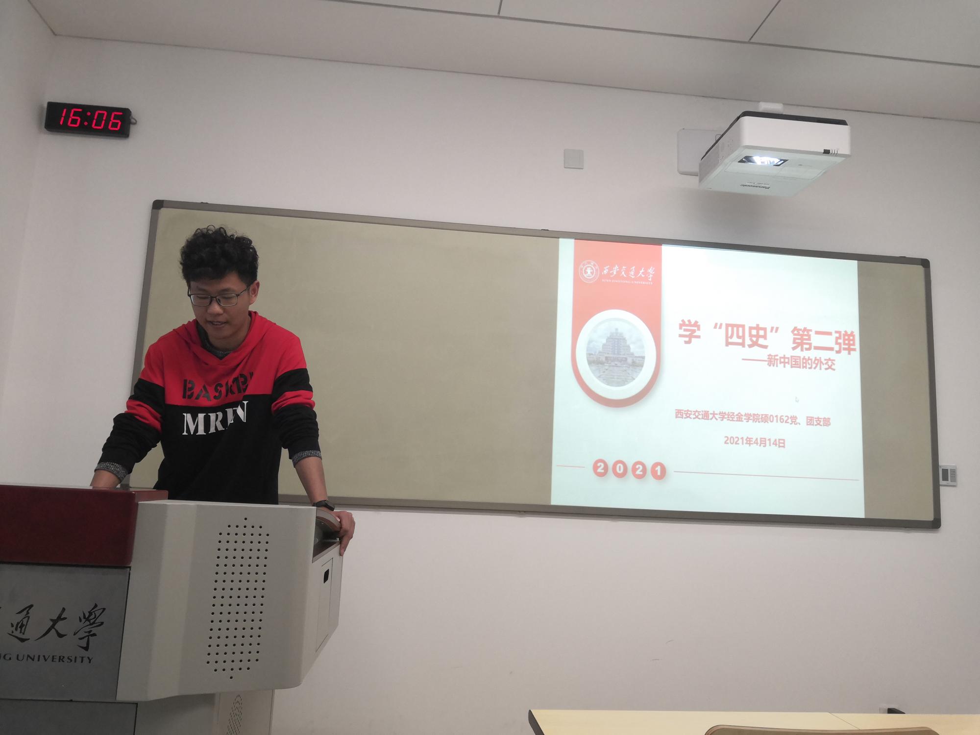 习近平总书记指出,只有坚持思想建党、理论强党,不忘初心才能更加自觉,担当使命才能更加坚定,要把学习贯彻党的创新理论作为思想武装的重中之重,并同学习党史、新中国史、改革开放史、社会主义发展史结合起来。为积极响应总书记号召,硕0162党支部与4月14日下午开展了“学四史、守初心、更奋进”新中国外交史专题学习活动。