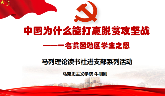 听了牛刚刚的分享之后,两个支部的同学深受启发,硕0162党支部的陆涛同学指出,无论是西方还是东方都存在贫困现象。由于西方政府和资本家从利益出发而没有解决贫困问题,中国共产党始终坚持为人民服务,所以能打赢扶贫攻坚战。硕0162党支部的贺敬茹同学认为,党在脱贫攻坚战中具有强大领导力,作为新时代的青年,我们应当听党指挥、跟党走,将个人命运和国家发展联合起来。硕0124团支部的张倩同学对牛刚刚同学的宣讲表示肯定和感谢,她认为中国在脱贫攻坚战中经历了许多艰难困苦,但是这些困难更加坚定我们打赢脱贫攻坚战的决心,并表示作为新一代的赶考人,要从张桂梅、黄文秀等优秀人物身上汲取力量,坚持苦干和实干。硕0124团支部的吴迪同学从西药和中药的对比出发,认为精准扶贫是弥补前期经济发展不平衡所带来的一系列问题的一剂中药,对推动中国高质量发展具有重大意义。马列读书社团支部书记任娟同学亦总结道:中国共产党打赢脱贫攻坚战为实现人民幸福和民族复兴做出重大贡献,为全人类减贫事业提供了中国方案和中国智慧。她还对经济与金融学院硕0162党支部和马克思主义学院硕0124团支部做了美好祝愿,本次活动圆满结束。
