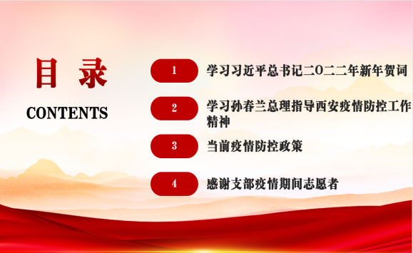 2021年末,一场突如其来的疫情打乱了西安人民的生活,虽病毒肆虐,纵有白衣铠甲,红心小队,逆行出征,冲在疫情第一线,保障了西安人民的正常生活。截至今日,西安疫情在所有人员的共同努力下已经进入收尾阶段。硕0161党支部于2022年1月16日采取线上腾讯会议的形式召开组织生活会,学习习近平总书记二O二二年新年贺词,感悟其中蕴含的人民情怀,学习孙春兰总理指导西安疫情防控工作精神,了解当前西安疫情最新动态以及感谢支部抗疫志愿者。