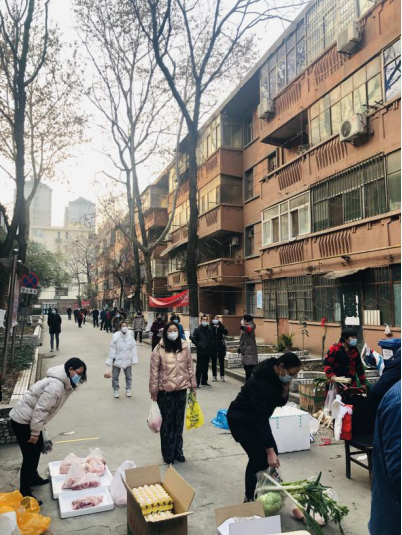 经济与金融学院单英骥博士在财经家属区管控开始就积极联系西安市商务局,为3个家属区提供蔬菜,蛋,肉,水果的购买渠道,并帮助学院联系有防疫通行证的货车把社会捐赠物资顺利运送到各个校区。