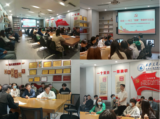 自习近平总书记发表关于碳达峰、碳中和的重要讲话以来,“双碳”和构建绿色发展新格局已成社会关注的热点。为更好了解“双碳”政策,助力推进“双碳”目标实现,学习“双碳与化工”、“双碳与金融”之间的关系。2022年4月28日下午,经金学院2021级金融专硕党支部和化工学院硕1142党支部齐聚创新港化工学院党员之家,共同举办“双碳”专题学习活动。会议由经金学院2021级金融专硕党支部书记李永鼎主持,化工学院党委副书记陶磊出席指导。