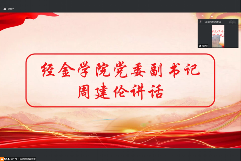 在中国共产党第二十次全国代表大会召开之际,为深入学习习近平新时代中国特色社会主义思想,弘扬伟大建党精神,在党团共建中汇聚青年力量,经金学院硕2174班党、团支部及硕2173班党、团支部共同开展了以“青春献礼二十大,争做西迁新传人”为主题的线上联学分享会。经济与金融学院党委副书记周建伦,经济与金融学院团工委书记王平,经济与金融学院辅导员朱博文受邀出席会议,两支部全体党、团员参会。会议由硕2174班团支部书记王翌焘主持。