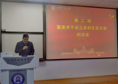 周建伦副书记宣读了《关于成立经金学院启德书院本科生党支部的决定》。根据基层党组织建设工作有关规定及《方案<试行>》文件精神,经学院党委会会议研究,决定成立经金学院启德书院本科生第一党支部、第二党支部、第三党支部三个本科生党支部。第一党支部包括金融、金融工程两个专业;第二党支部包括财政、经济、经济统计三个专业;第三党支部包括国际经济与贸易、贸易经济和电子商务三个专业。院党委要求新成立的各党支部要坚持民主集中制,按照程序开展相关工作,在党员教育管理、党员学习等工作中发挥好党支部战斗堡垒作用。