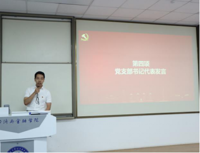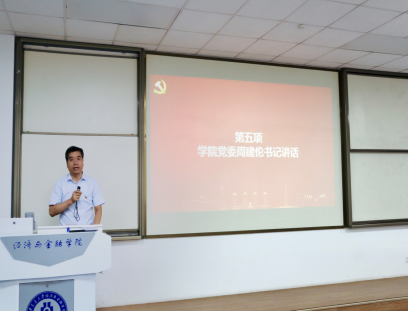 经金学院党委周建伦书记代表学院党委向72名新党员表示衷心的祝贺和热烈的欢迎。他指出加入中国共产党,是一个人政治生命中的一件大事,它标志着个人的奋斗和追求进入了一个新的境界、新的起点。他代表学院党委向新加入组织的党员同志们提出三点要求:一是要坚定共产主义的理想信念,在大是大非面前一定要做到头脑清醒、立场坚定;二是要勤奋学习,不断提高自己的专业能力与综合素质,要自觉用党的理论武装头脑;三是要不断争先创优,充分发挥共产党员的先锋模范作用,在学习和生活中带头遵守纪律,服务奉献,以身作则。他希望同志们在今后的学习生活中更加坚定和成熟,不断展现一个新时代党员的先进风采,砥砺奋进,不负青春年华,为人民幸福、社会进步、国家发展和民族复兴做出自己的贡献。最后,他强调各党支部要深入贯彻落实本研党支部共建互助,党员同志要主动“亮身份、作表率”,将联合共建活动抓好抓常,推动双院育人工作取得实效。