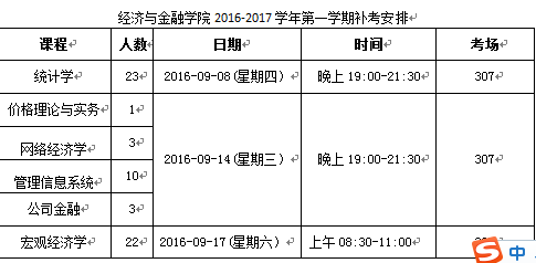 经济与金融学院2016-2017学年第一学期补考安排