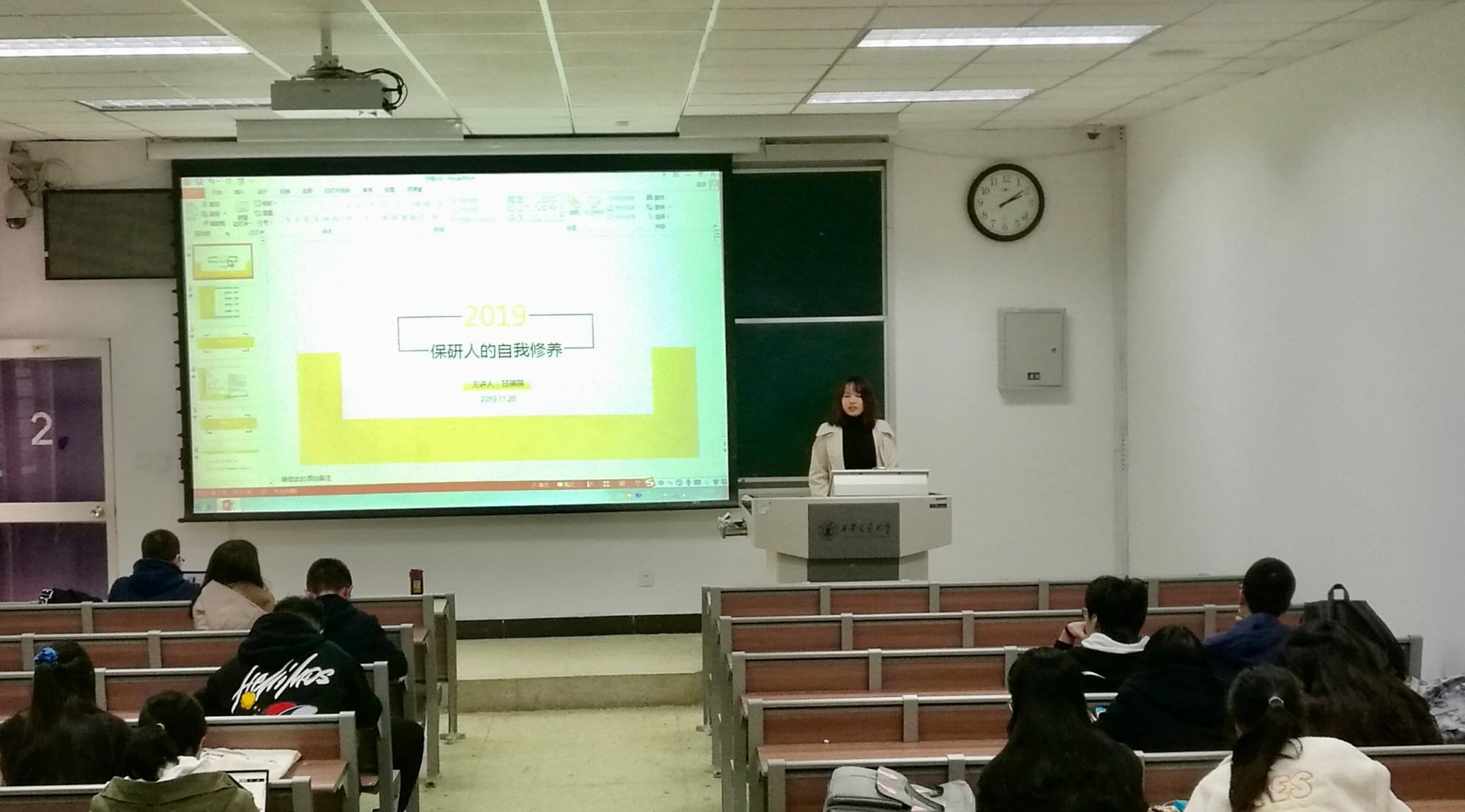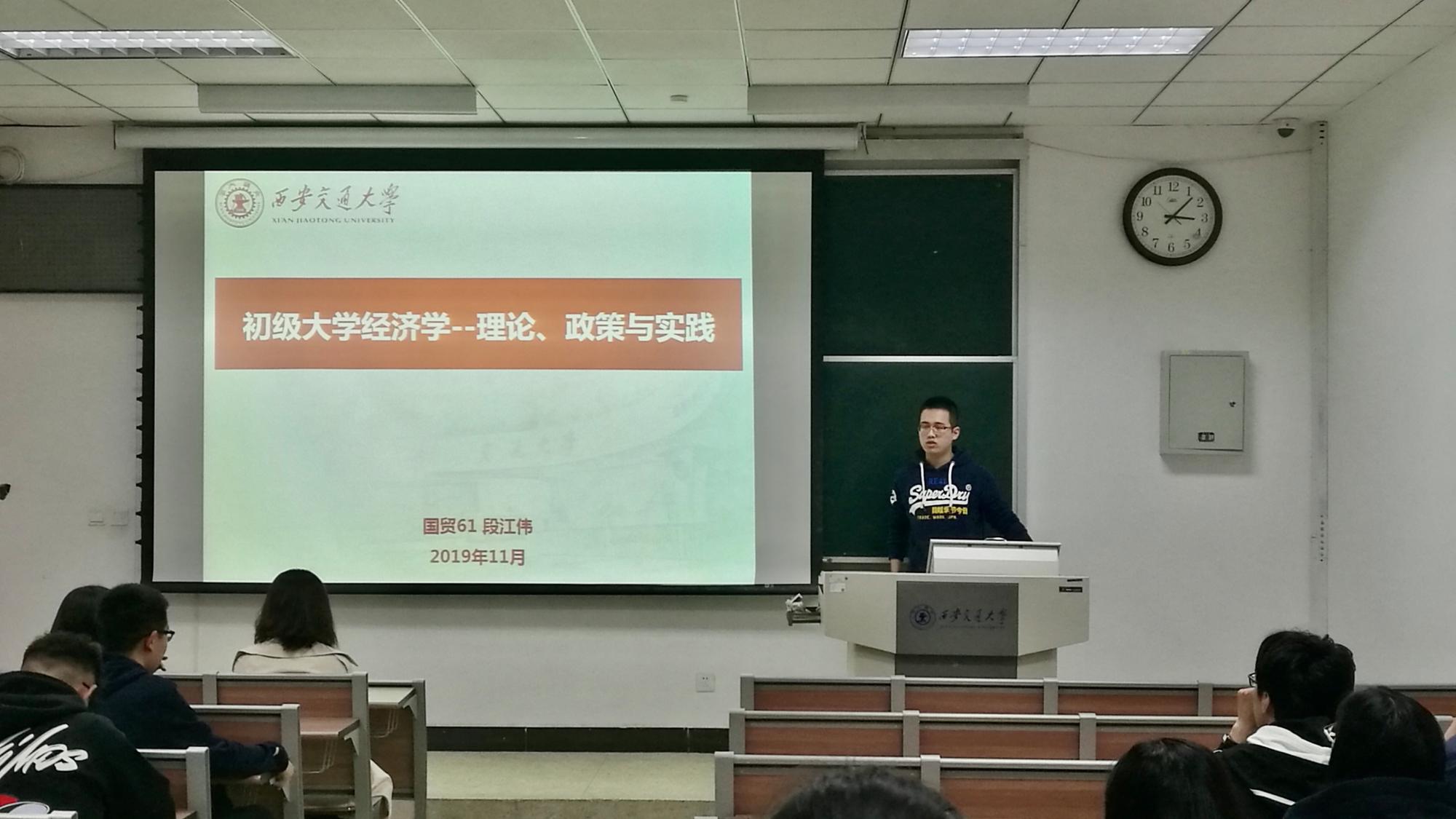 2019年11月20日,第六期知新讲坛系列活动在西配102举行,经济910班主任杨万平副教授主持本次学习经验交流会。2016级国际经济与贸易专业甘祺祺(保研至中山大学岭南学院)、段江伟(保研至西安交大经金学院)两位同学为大一大二的学生介绍了自己的学习经验。