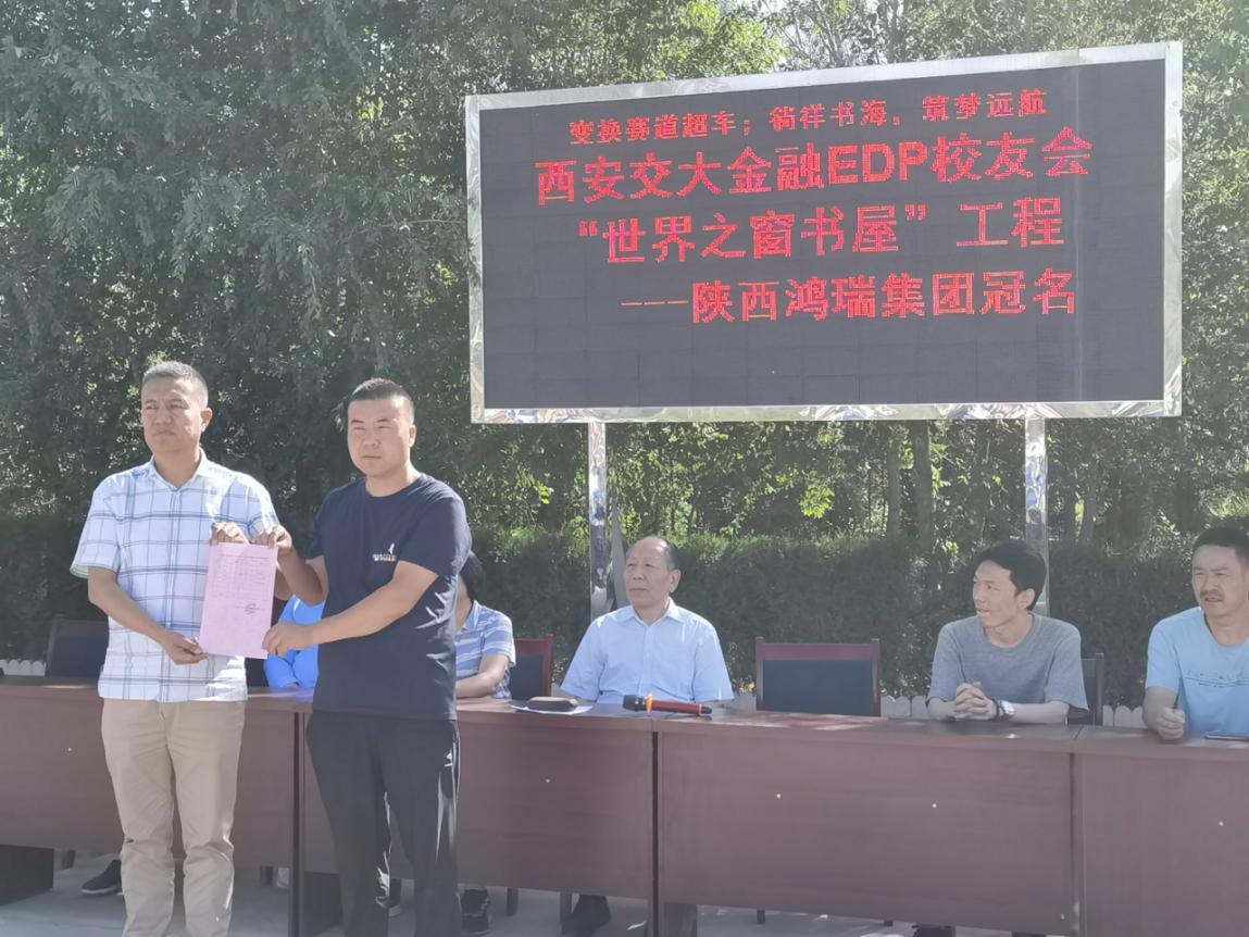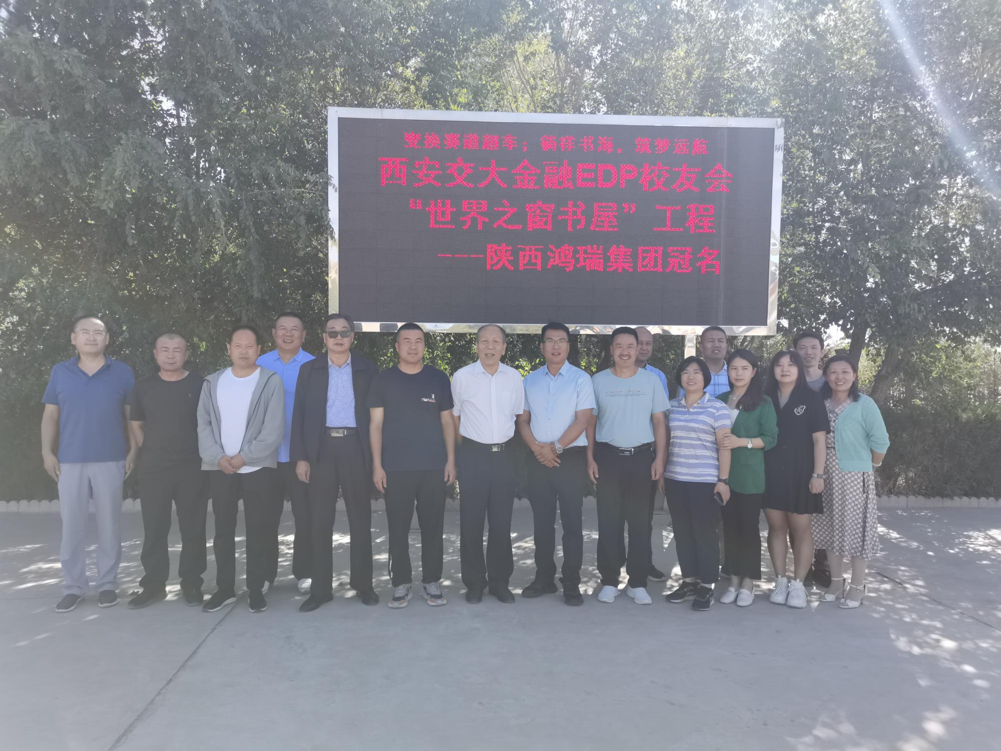 2022年6月28日,由陕西鸿瑞集团冠名赞助的第八届“世界之窗书屋”活动,在甘肃省兰州市永登县大同学校和民乐乡漫水小学顺利举行。西安交通大学金融EDP校友会“世界之窗书屋”活动实施小组跨越近1000公里奔赴甘肃省兰州市永登县,为永登县2所学校141个班级的师生们送去了6665册书籍和141个书架,为孩子们搭建由他们自主管理,自由借阅的班级图书角。