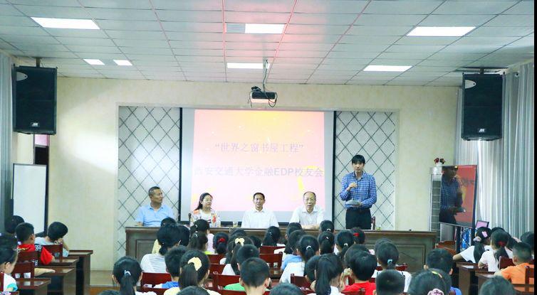 “世界之窗书屋”工程是西安交通大学金融EDP校友会发起的社会公益活动,以“友谊、互助、发展、公益”为宗旨,目的是让广大有需要的孩子们有书读、多读书、读好书、爱读书;通过交大校友力所能及的行动将图书送进教室,送到孩子们手中,鼓励同学们自由读书、自主管理,进而形成爱读书的良好习惯,并让此习惯伴随终身。同时也希望引起更多的社会各界人士关注并投入偏远山区教育事业。