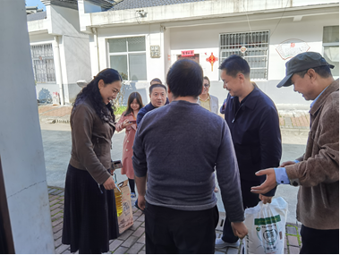 随后,西交大社会教育管理处、经金学院一行人来到兴隆镇汝河村,看望西安交通大学驻村扶贫队员,并走进贫困户家中进行慰问,仔细询问他们的身体状况、家庭收入,送去米面油等慰问品。