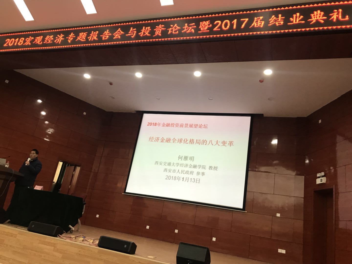 辞旧岁共论经济走向,迎新春齐绘发展蓝图。2018年1月13日,由西安交通大学经济与金融学院高培中心、西安交通大学校友会金融EDP分会联合主办的“2018宏观经济与投资展望新年论坛”活动在西安交通大学财经校区成功举办。