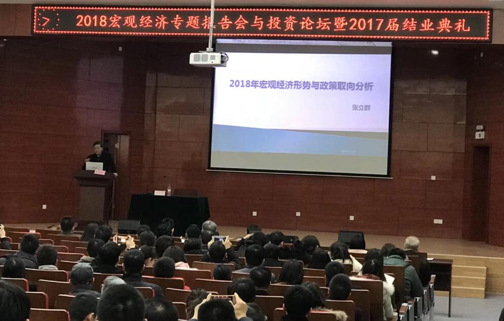 副院长严明义教授致开幕词 国务院发展研究中心张立群教授《2018宏观经济形势与政策取向分析》