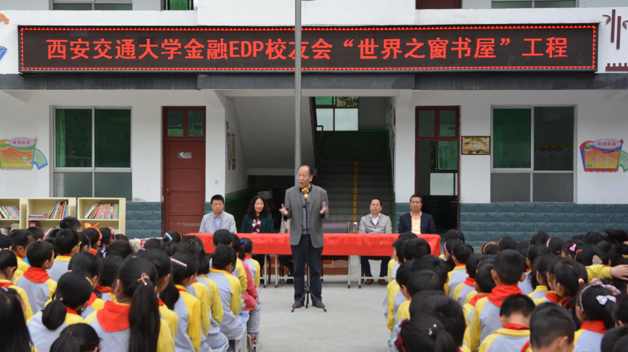 2017年4月21日,世界读书日到来之际,西安交通大学金融EDP校友会“世界之窗书屋”工程实施小组来到安康市平利县兴隆镇,开展“鲲鹏展翅飞,知识永相传——‘世界之窗书屋’公益活动”,给那里的孩子们送上书籍与书架,让书香的韵味熏染孩子们的心灵,用精神的力量鼓舞孩子们从小养成热爱阅读的良好习惯。