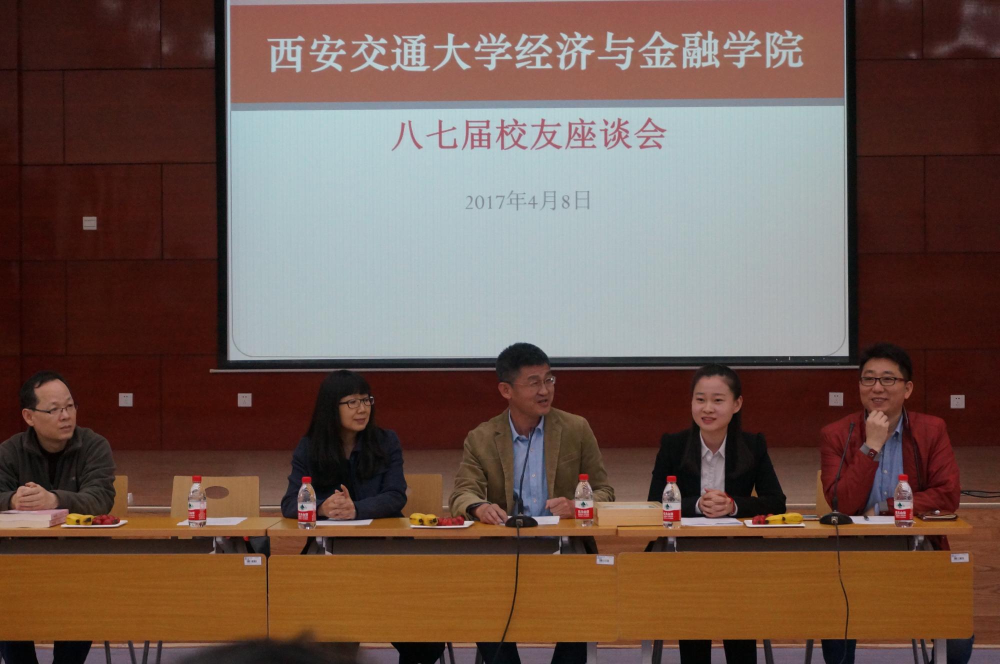 四月的校园春意盎然,到处洋溢着121周年校庆的氛围。4月8日下午,陕财87届校友与在校师生欢聚一堂,举办了一场温馨的校友座谈会。经金学院党委书记宋丽颖、院长孙早、校友办主任王志斌、院办副主任张华及研究生会主席冯雪婷等参加。