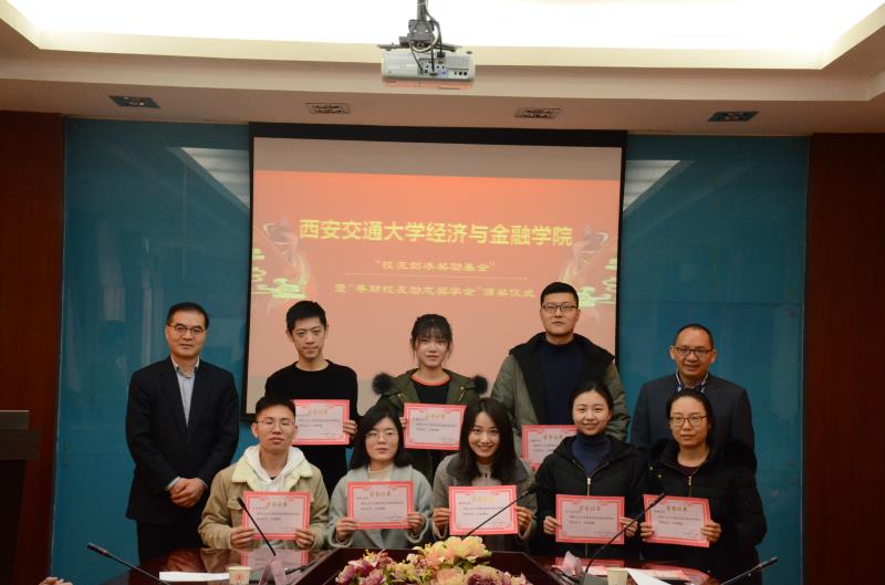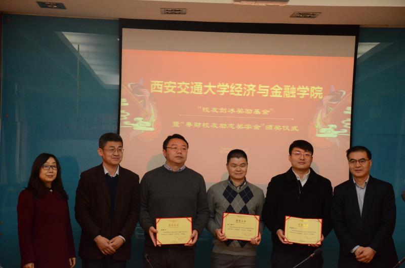 2020年1月12日上午,西安交大经济与金融学院2019年度“校友剑冰奖励基金”暨“暨粤财校友励志奖学金”颁奖仪式在财经校区教学楼国际交流厅举办。阳光控股执行董事、阳光城执行副总裁、“校友剑冰奖励基金”设立人吴建斌校友,西安交大广东财经校友会会长刁辉波校友,西安交大教育基金会秘书长赵卫滨,西安交大经金学院党委书记宋丽颖、院长孙早、党委副书记周建伦,西安交大宗濂书院院务主任陈阳静,启德书院院务副主任李聪,经金学院团工委书记辅导员王平,宗濂书院辅导员梁俊凤,三位获奖教师及30多名获奖同学参加。周建伦主持颁奖仪式。