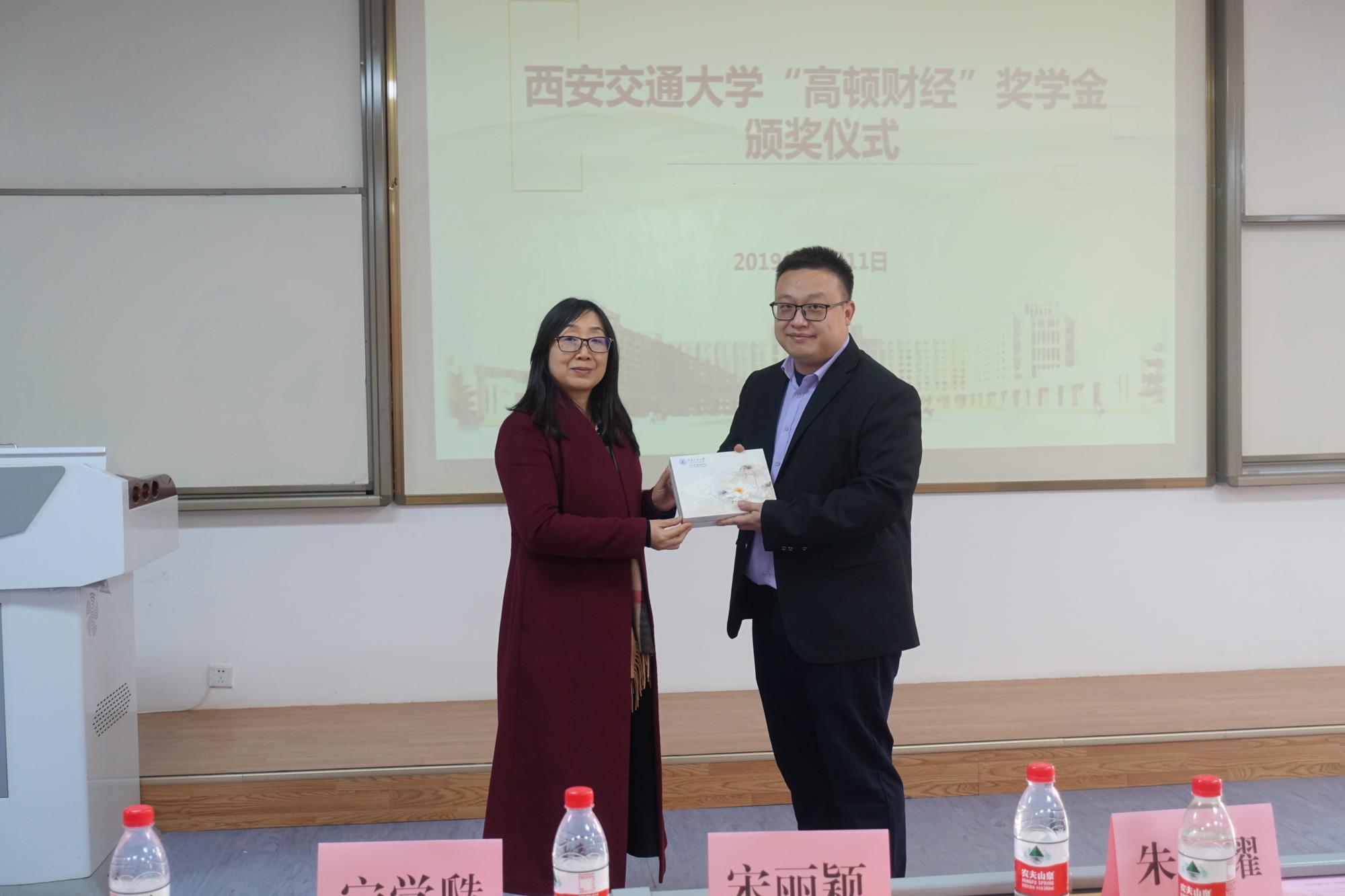 颁奖仪式前,经金学院宋丽颖书记和周建伦副书记与高顿领导进行了座谈。