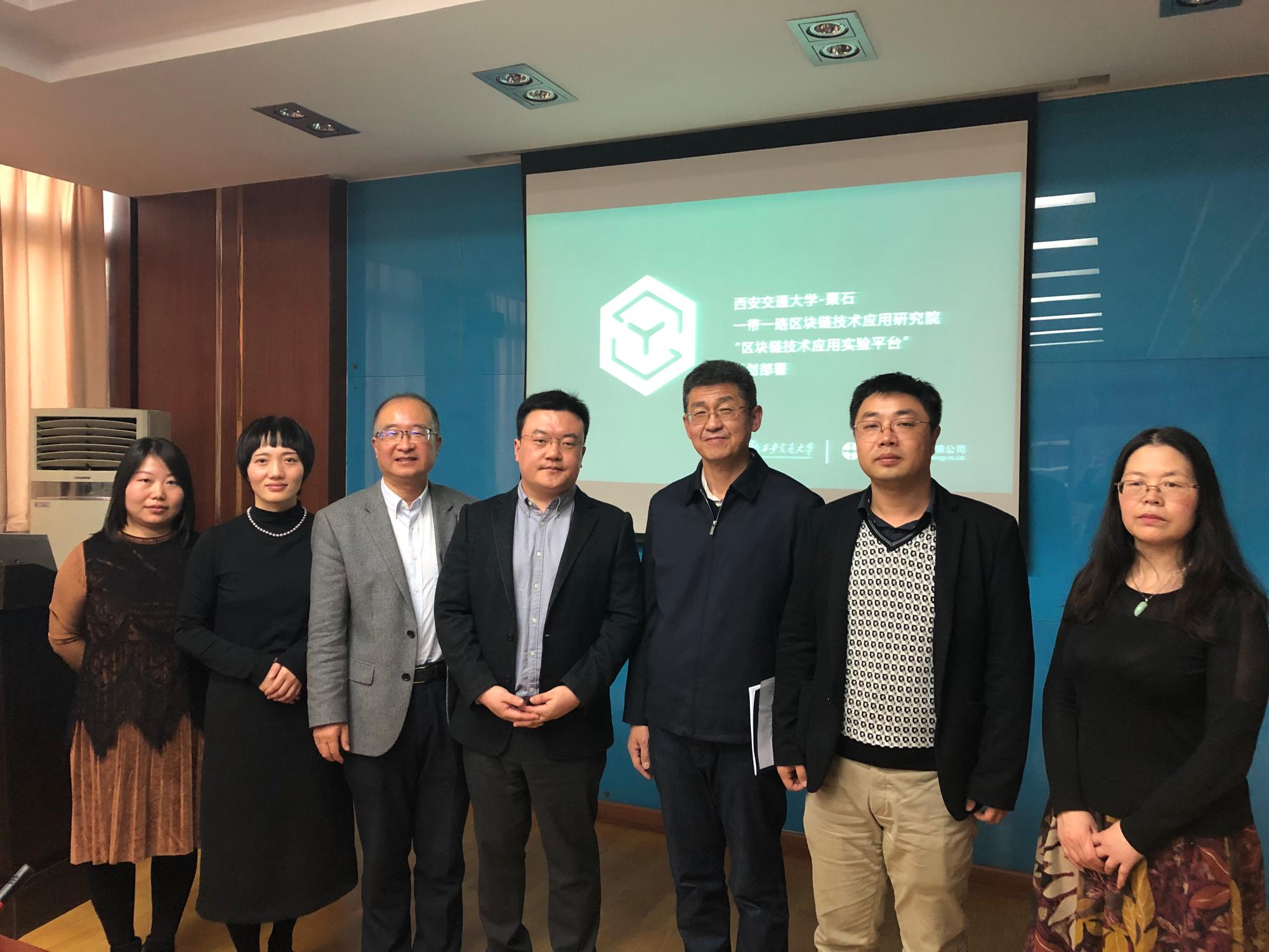 孙早院长首先代表学院对王建董事长一行表示热烈欢迎,并表达了在区块链方面进行校企合作、人才培养、创新研究的愿望。孙早院长表示,成立西安交通大学-聚石“一带一路”新经济研究院,不仅能够展现聚石云库在行业内外的服务能力和影响力,而且能够推动校企间 “产学研”合作,为学生提供前沿领域知识的实践机会与就业机会,是积极落实国家“一带一路”政策及区块链发展政策的一次有益探索。
