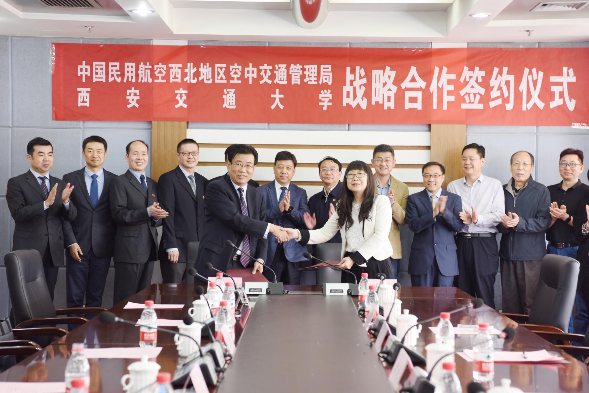 2019年4月8日,西安交通大学与中国民用航空西北地区空中交通管理局在兴庆校区主楼第5会议室举行了战略合作签约仪式。中国民用航空西北地区空中交通管理局局长谢林岩、西安交通大学副校长席光出席仪式并致辞;西北空管局副局长鲁晓安、经金学院党委书记宋丽颖代表双方签署合作协议;经金学院院长孙早主持签约仪式。