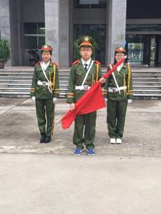 30分,升旗仪式正式开始。迎着朝阳,国旗护卫队成员迈着铿锵的步伐来到了国旗台下,全场一片肃静。在激昂的《义勇军进行曲》中,护旗手振臂一挥,鲜艳的五星红旗随风展开,升旗手随之将五星红旗徐徐升起,五星红旗在晨曦中迎风飘扬在旗杆顶端。 本次升旗仪式的升旗手董剑秋表示,今天很荣幸作为一名升旗手参与本次升旗活动。当身穿军装,升起国旗时,一种自豪感油然而生。站在国旗下,仰望迎风飘扬的五星红旗,建设祖国,为人民服务的热情被点燃。在国旗的感召下,我将继续努力,奋勇向前,为人民之幸福、 社会之进步、祖国之富强,奋斗终身!