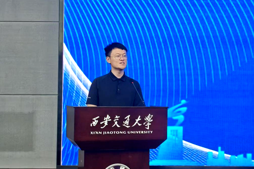 研究生新生代表、硕5188班刘智睿同学从中国人民大学的求学经历出发,表达了对交大跨学科融合培养模式的向往,并庄严承诺将传承西迁精神,勇担时代使命。