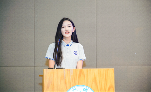 新生代表、经济学类2507班徐言分享了初入校园的感受与对大学生活的期待,并理性分析了即将面临的挑战。她呼吁同学们在大学学习生活中认识自我、高效规划,以曾国藩“有志、有识、有恒”之言与同学们共勉。