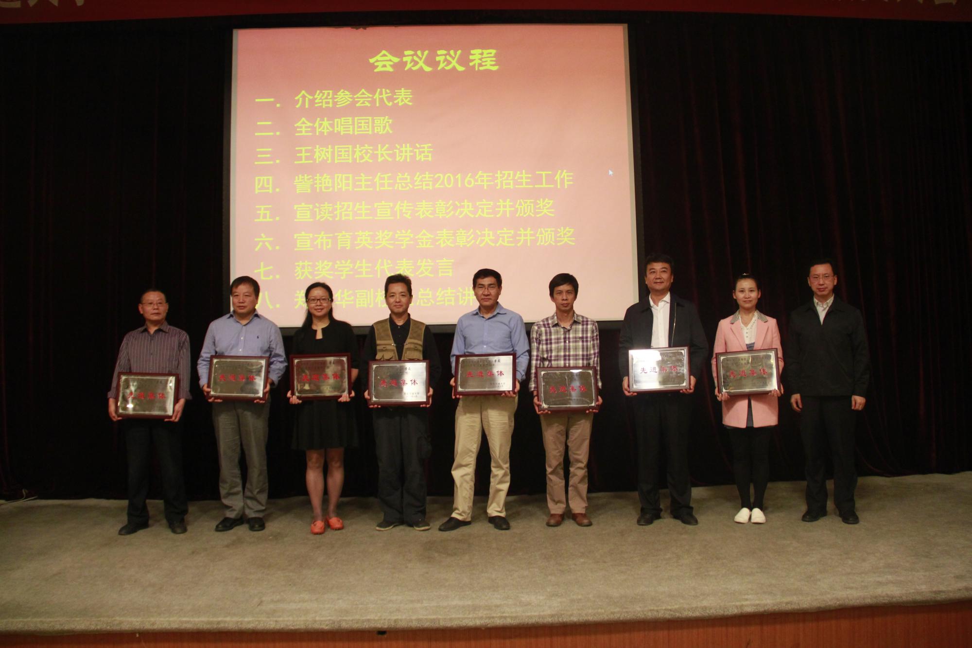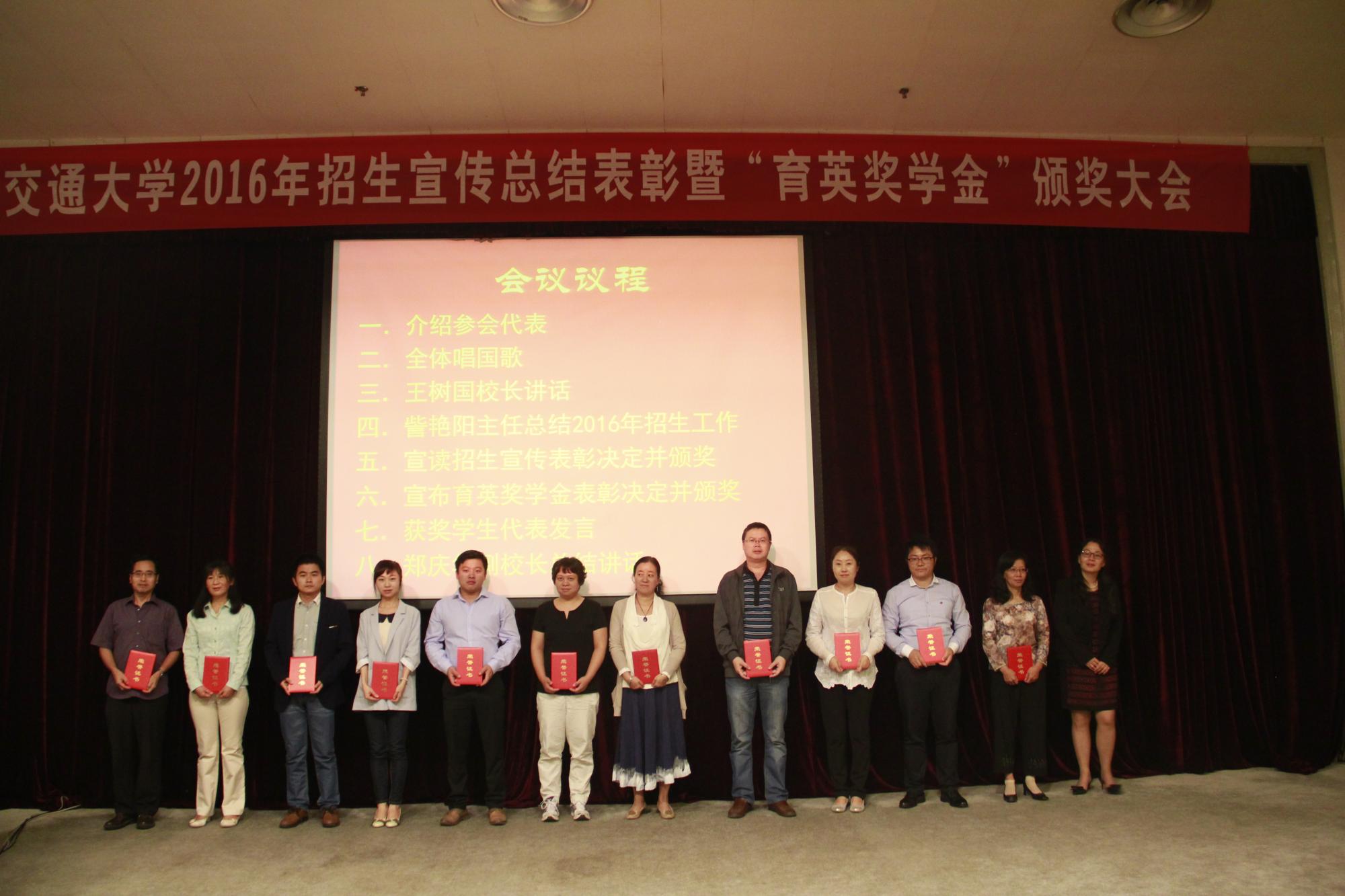 在学院领导的关心支持和招生组的不懈努力下,2016年我院本科生招生宣传再传捷报:在9月29日上午学校科学馆召开的招生宣传总结表彰暨“育英奖学金”颁奖大会上,我院山西招生组继去年获奖之后,再次被学校授予“招生宣传先进集体”称号;刘愈、杨江萍、田皓和李超英等四位老师被评为年度“招生宣传先进个人”;田皓老师被授予西安交大首届“招生卓越贡献奖”称号,成为全校获此殊荣的两位获奖者之一,受到学校表彰。