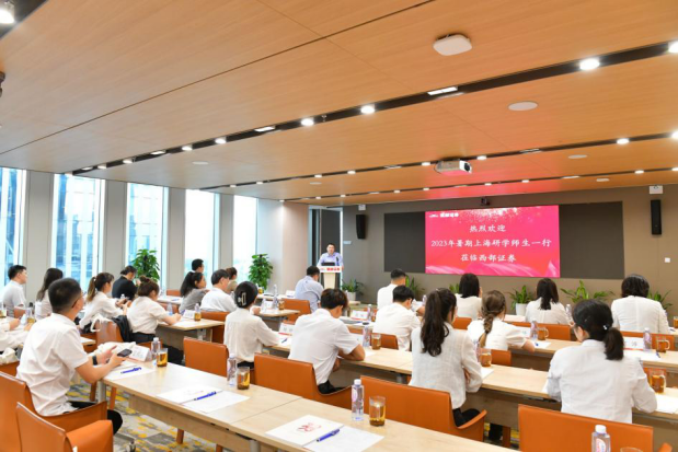 8月9日研学活动第一站,师生们来到西部证券上海前滩总部进行参观,西部证券研发中心宏观首席边泉水、西部证券首席战略和人力资源官刘庆海等公司相关负责人做了精彩报告,同学们受益匪浅。