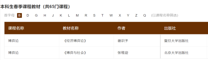 春季学期课程教材