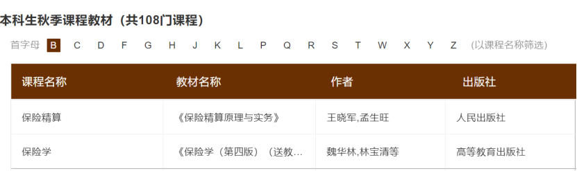 秋季学期课程教材