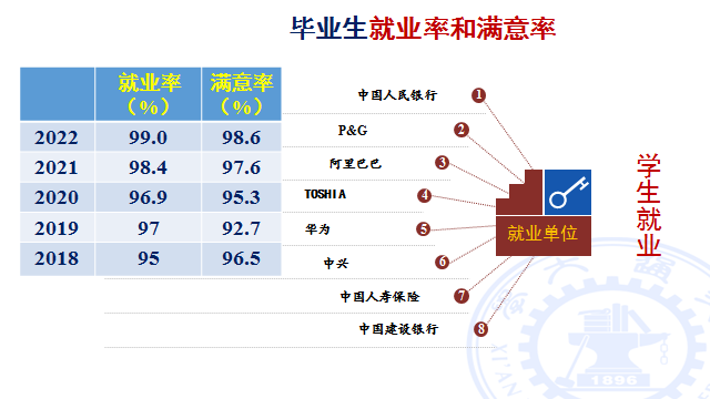 近年来经济统计专业毕业约有60%继续深造,大部分选择国内外知名大学攻读硕士或博士学位,其中国内高校主要有西安交通大学、清华大学、复旦大学、中国人民大学、上海交通大学;国(境)外大学包含美国威斯康辛大学、新加坡国立大学、香港大学、香港科技大学等;毕业生就业面广、前景好,绝大部分选择国有银行、行业龙头企业。