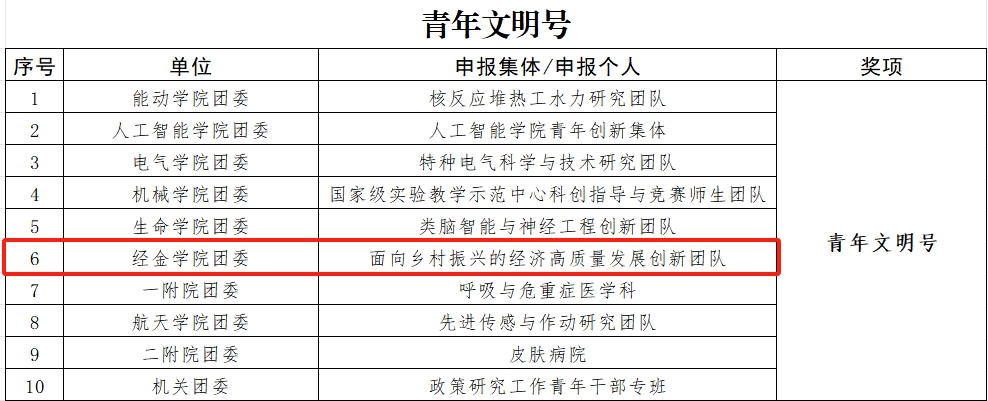 近日,西安交通大学青年文明号、青年岗位能手评选活动顺利落幕。经过激烈的层层选拔,我院李聪老师带领的“面向乡村振兴的经济高质量发展创新团队”荣获“青年文明号”称号,李江龙老师荣获“青年岗位能手”称号。