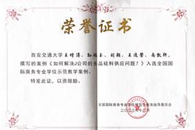 12月1-2日,全国国际商务专业学位研究生教育指导委员会(简称MIB教指委)在暨南大学举行了全国国际商务专业学位示范教学案例研讨会,会议为首届全国国际商务专业学位示范教学案例入选者颁发了证书。学院报送的两篇教学案例,经过严格的资格审查、专家打分、内容查重和专家会评等环节,从参赛的200余份作品中脱颖而出,成功入选全国国际商务专业学位示范教学案例。此前,袁晓玲教授主讲的国际市场营销课程已成功入选全国MIB教指委评选的国际商务专业学位研究生线上示范建设课程。