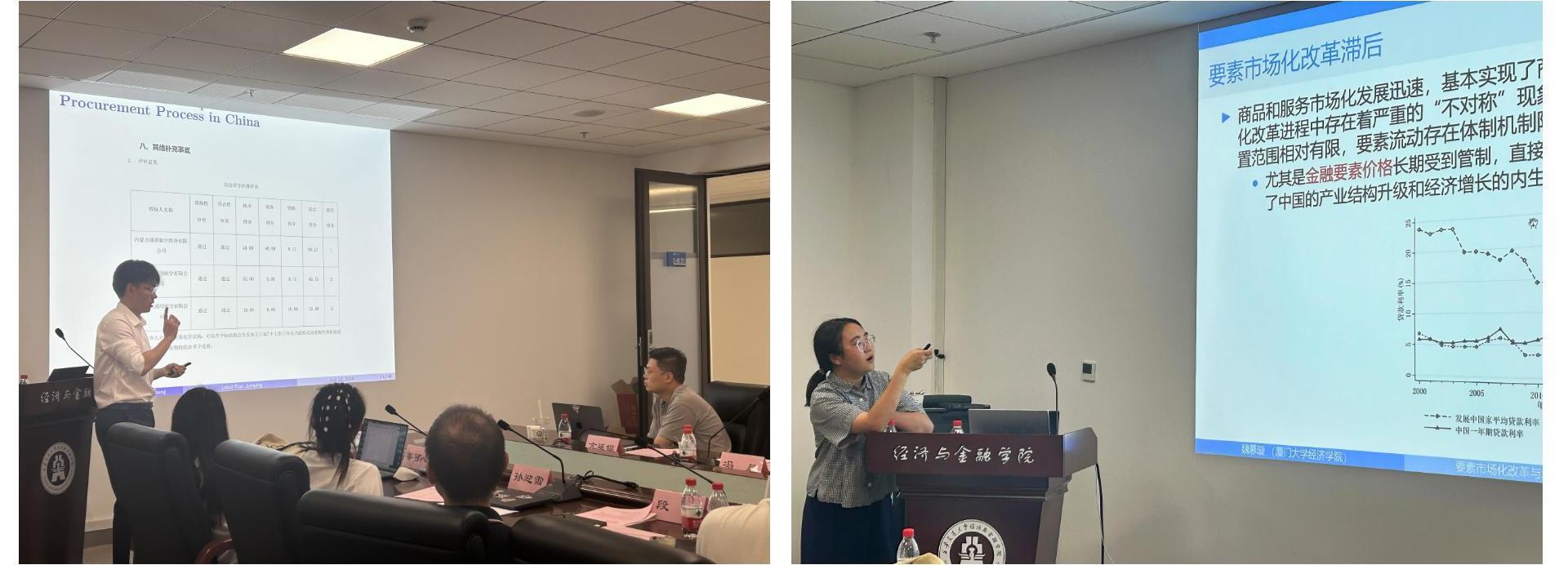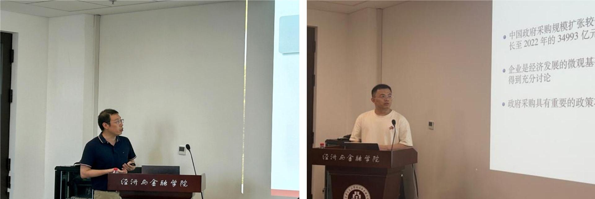 华中科技大学段堃副教授报告的题目是《Clean Air Policy, Population Mobility, and Housing Prices: Unveiling the Overlooked Dynamics》,该文章从人口流动的视角解释了环境规制对房价的影响,利用“Amenity Effect”和“Production Effect”将以往研究中的环境规制悖论统一在一个理论框架下。中南大学赵浩云博士报告的题目是《政府采购与企业发展:甄别、助推及其宏观经济效应》,该文章详细探讨了政府采购这一宏观政策对微观企业主体的影响,并指出政府对小微企业的定向采购对企业发展有良好的推动作用。