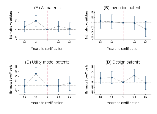 针对上述问题,经金学院教师戴小勇与博士生王梦琪共同完成的一项研究,探究了企业对税收激励的策略性行为反应。聚焦于中国的高新技术企业认定政策,研究发现:企业为了获得高新技术企业认定带来的税收优惠,在认定前一期策略性地增加实用新型专利申请,但并未增加发明专利与外观设计专利申请。这主要是因为实用新型专利的申请周期较短、创新程度较低且能够满足高新技术认定对专利与知识产权的要求。然而,策略性专利并未伴随着真实的研发投入,也未带来实质性的创新产出,仅代表企业对税收激励的策略性反应。