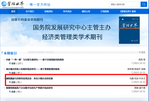 企业投资对经济增长具有重要影响,而税收政策作为一种调控企业投资行为的重要工具,其激励作用及内部机制一直受到学术界的广泛关注,但是现有相关研究可能存在的不足之处在于,其一,更多关心的是具有较大规模的企业在面对减税激励时所采取的投资反应,而忽视了对小微企业应税行为的探索;其二,忽略了企业应对政策所可能具备的策略性互动,从而面临因果识别方面的挑战。针对于此,西安交通大学经济与金融学院青年教师冯晨博士以第一作者署名与上海财经大学公共经济与管理学院刘冰博士、叶永卫博士等完成的一项研究尝试探讨了我国减税政策对小微企业投资行为的异质性影响,从而一定程度上填补了该方面所存在的研究空白。该项合作成果已于近期正式发表于我国经济学顶级期刊《管理世界》,西安交通大学经济与金融学院为第一署名单位。