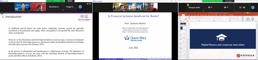 26日下午,三个分会场通过Zoom平台召开了线上会议,来自格拉斯哥大学、清华大学、西安交通大学、香港中文大学(深圳)、对外经济贸易大学、首都经济贸易大学、西南财经大学等国内外知名高校的专家和青年学者参加了本次会议。新一轮科技革命催生了数字产业化和产业数字化,各分会场围绕经济、金融与数字经济主题,对经济政策不确定性与网络信贷、对外直接投资与东道国经济增长、经济不确定性与股价波动、COVID-19与机构投资者交易行为、汇率预测的新技术和新方法、互联网发展与家庭商业保险需求、数字经济与创新创业、数字金融与企业创新等问题展开了深入交流,探索数字经济如何重塑经济格局。