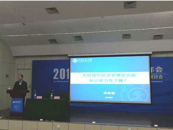 冯根福教授应邀作了题为“为何现代经济学理论功能和公信力在下降”的主旨演讲。