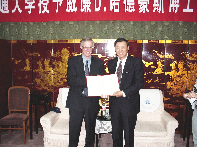 威廉·诺德豪斯教授曾于2002年应邀来我校经金学院访问,西安交大时任校长徐通模教授亲自为其颁发聘书并为其佩戴校徽,聘任威廉•诺德豪斯教授为西安交大名誉教授。威廉•诺德豪斯教授是美国杰出的经济学家之一,出生于新墨西哥州的爱伯克奇。本科就读于耶鲁大学,经济学博士学位是在麻省理工学院获得的。现任耶鲁大学惠特尼?格里斯伍尔德经济学教授和考尔斯经济学研究基金会理事。诺德豪斯的经济学研究范围很广,包括环境、价格、能源、技术变革、经济增长、利润和生产率的增长趋势。此外,诺德豪斯还对经济政策很感兴趣。他在1977 ~ 1979年间是卡特总统经济顾问班子成员,曾在美国政府各种顾问理事会和委员会中任职,不时给《纽约时报》和其他报刊撰文,在耶鲁大学主讲经济学原理课程。