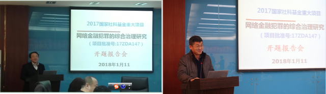1月10日上午,由我校经济与金融学院张成虎教授担任首席专家的2017年度国家社会科学基金重大项目《网络金融犯罪的综合治理研究》开题论证会在我校举行。西安交通大学副校长席光教授、学校人文社科处处长贾毅华、副处长张日鹏等出席了开题论证会。本次开题论证会由复旦大学法学院汪明亮教授担任专家组组长,中国人民公安大学信息技术与网络安全学院曹金璇教授、西安市公安局经开分局副局长王世军、西安交通大学法学院马民虎教授、西安交通大学经济与金融学院院长孙早教授任专家组成员。子课题负责人中国人民公安大学信息技术与网络安全学院院长李欣教授、西北政法大学经济法学院院长强力教授、西安交通大学法学院书记王保民教授、西安交通大学经济与金融学院李富有教授和徐凤敏教授以及主要研究人员陕西省公安厅经济犯罪侦查总队政委蒋乐耕等参加了研讨会。