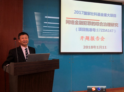 课题组首席专家张成虎教授以网络金融犯罪问题为导向,从课题基本观点和总体认识出发,依次介绍了课题的总体框架、研究思路、研究方法、创新之处、预期成果及研究计划。他指出,以互联网金融为代表的金融创新在提高金融服务效率,降低服务成本,提高金融普惠性的同时,也给犯罪分子利用金融创新从事犯罪活动提供了可乘之机,而且网络金融犯罪与时俱进,不断创新,成为一种日益严重的社会毒瘤,严重危害着广大人民群众的切身利益、家庭幸福和生命财产安全,破坏国家的金融秩序和金融安全,影响着党和各级政府在人民群众中的形象与公信力,甚至影响和动摇着中国共产党的执政地位和社会的稳定。然而,面对日益严重的网络金融犯罪,我国理论界和实务部门,对网络金融犯罪的治理缺乏全方位、综合性的整体方案,无法形成合力达到最佳的治理效果。课题从网络金融犯罪治理的现实困境出发,遵循“发现问题—>分析问题—>解决问题”的研究思路,剖析网络金融犯罪的内在特征和形成机理,设计网络金融犯罪的综合治理框架,从信息技术技术和法律两个方面有针对性的规划和设计治理的具体实施路径,并构建网络金融犯罪综合治理效果的评价体系。专家组各位成员对张成虎教授的课题设计给予了充分肯定,就课题的进一步完善、深化以及具体研究提出了切实可行的建议。