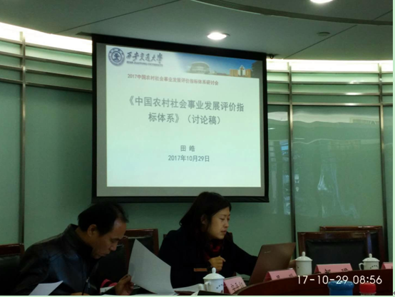 10月24日和29日,由国家农业部主办的《中国农村社会事业发展报告》(2015-2016)专家论证会、《2017中国农村社会事业评价指标体系》研讨会先后在北京河南大厦圆形会议室隆重召开。经济与金融学院硕士生导师田皓副教授,在会上就中国农村社会事业评价指标体系的构建问题作了主旨演讲,对主持完成的《中国农村社会事业发展研究报告》(2015-2016)作了内容介绍和情况说明。经济与金融学院院长助理、博士生导师温军教授、国家统计局副巡视员黄加才、人社部社会保障研究所研究员华迎放,陕西省统计局地方社会经济调查中心主任杨志俊、西安市政府专家决策咨询委员会秘书长徐楠、兰州大学博士生导师汪慧玲教授、中国农村杂志社副总编夏树,中国信息报编辑部主任安平印、以及环保部、国家体育总局、全国妇联、中国扶贫开发协会、农业部科技教育司、农业部市场司、中央农业广播电视学校、农业部农村经济研究中心等部门的20多位知名专家学者应邀参会。会议由农业部休闲农业处刘纪昌处长主持,农业部中国农村社会事业发展中心詹慧龙副主任到会并做了总结发言。