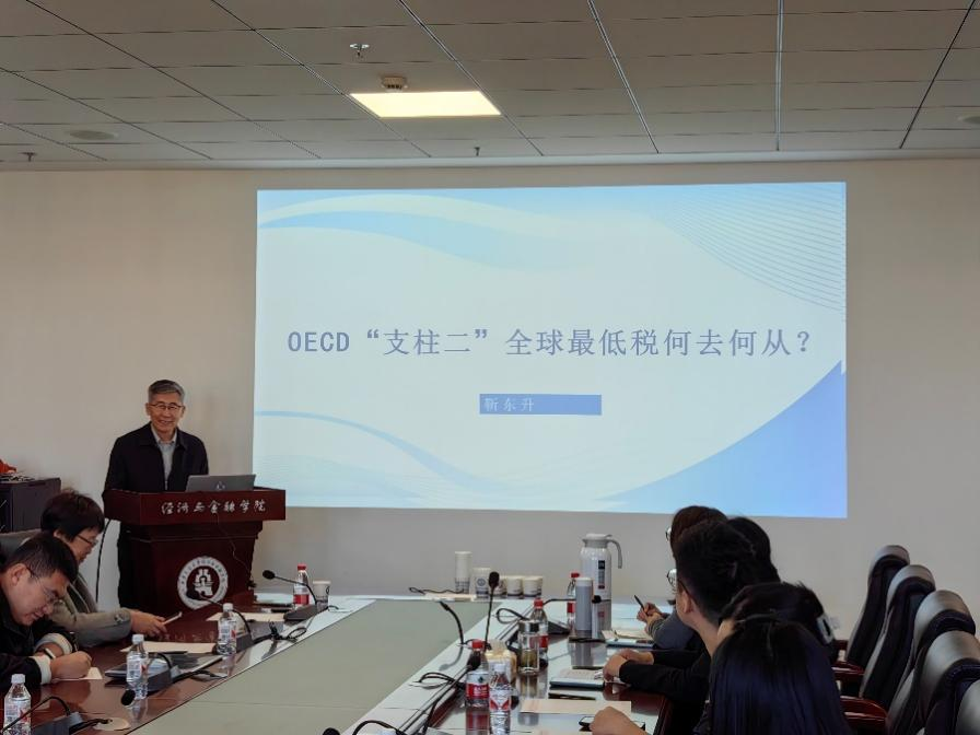 2024年11月29日上午,中国国际税收研究会学术委员会副主任靳东升研究员受邀在西安交通大学创新港8121会议室为我院师生做了题为“OECD‘支柱二’全球最低税何去何从?”的专题学术讲座。
