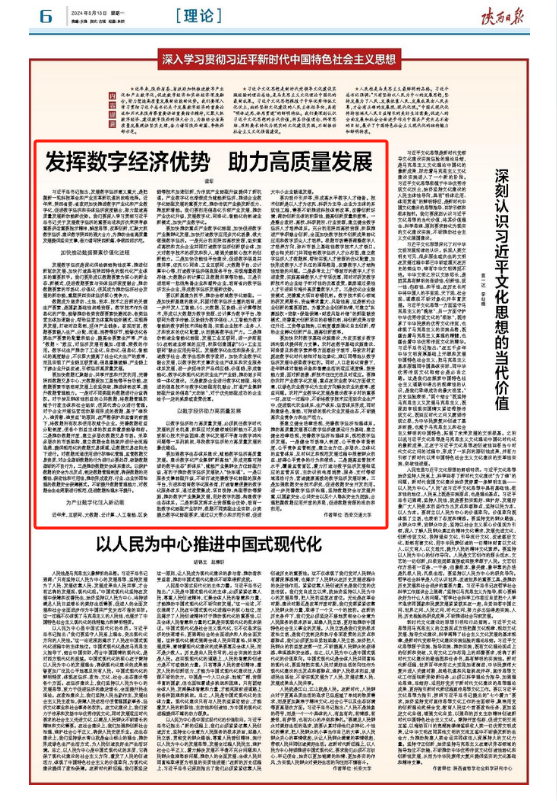 习近平总书记指出,发展数字经济意义重大,是把握新一轮科技革命和产业变革新机遇的战略选择。近年来,陕西省委、省政府加快推进数字产业化和产业数字化,促进数字经济和实体经济深度融合,努力塑造高质量发展新动能新优势。我们要深入学习贯彻习近平总书记关于发展数字经济的重要论述和历次来陕考察重要讲话重要指示精神,解放思想,改革创新,汇聚大抓数字经济、建设数字陕西的强大合力,为推动全省高质量发展提供坚实支撑,奋力谱写陕西新篇、争做西部示范。
