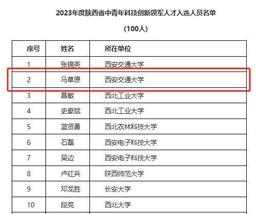 近日,陕西省科技厅公布关于2023年度陕西省中青年科技创新领军人才的通知,创新团队主要成员马草原教授入选。
